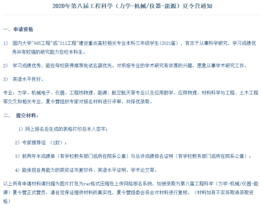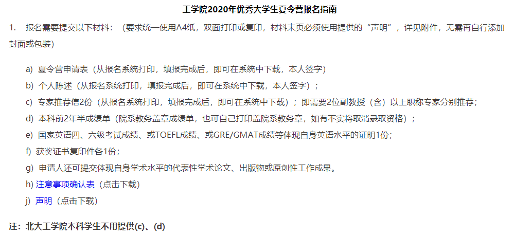 与往年不同,今年北大工学院在四月底便早早发布了夏令营开营通知,需要准备的申请材料比较多,如下图所示。
