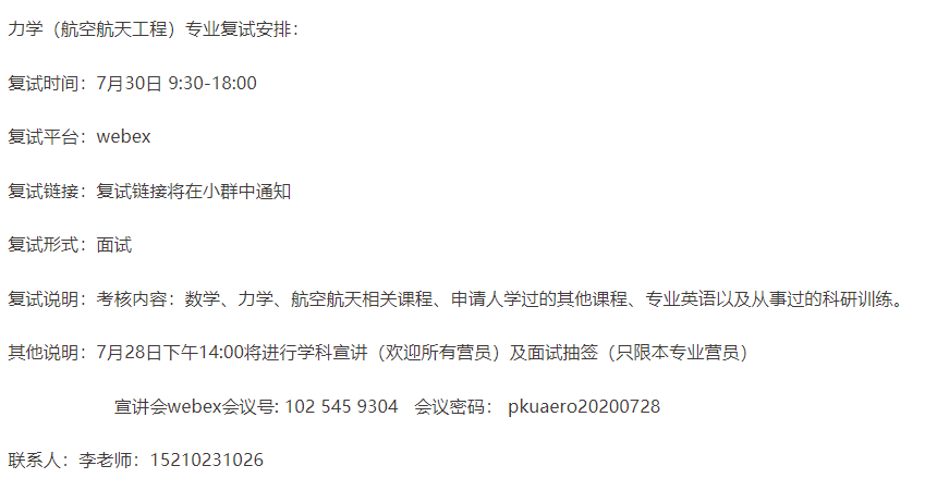 7月25号,夏令营开营仪式。28日,航空系进行学科点宣讲。同时,复试的考核内容公布。主要内容包括:数学、力学、航空航天相关课程、申请人学过的其他课程、专业英语以及从事过的科研训练。