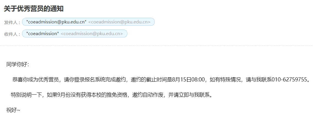 面试结束后,按照参加过工学院夏令营学长的经验,如果通过面试的话,老师会在当天晚上或者次日通知自己,如果没有通知的话,大概率是被刷掉了。但是,当时面试结束后的几天内,我并没有收到任何通知,所以内心非常忐忑,开始着手进行九推前的准备。8月上旬,在学长的建议下,我发送邮件给老师询问,最后终于得到了“已录取”的结果,这才算放下心来~ヽ(゚∀゚)~我想没有通知大概是因为老师工作比较忙碌的缘故哈哈。